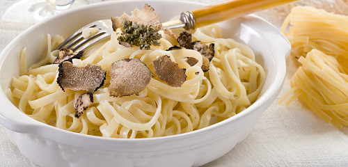 Tagliatelle nach Packungsvorschrift kochen, abgießen und nestförmig auf einem tiefen Teller platzieren. Die Pilze in der Mitte anrichten und die Sahne über die Nudeln gießen.